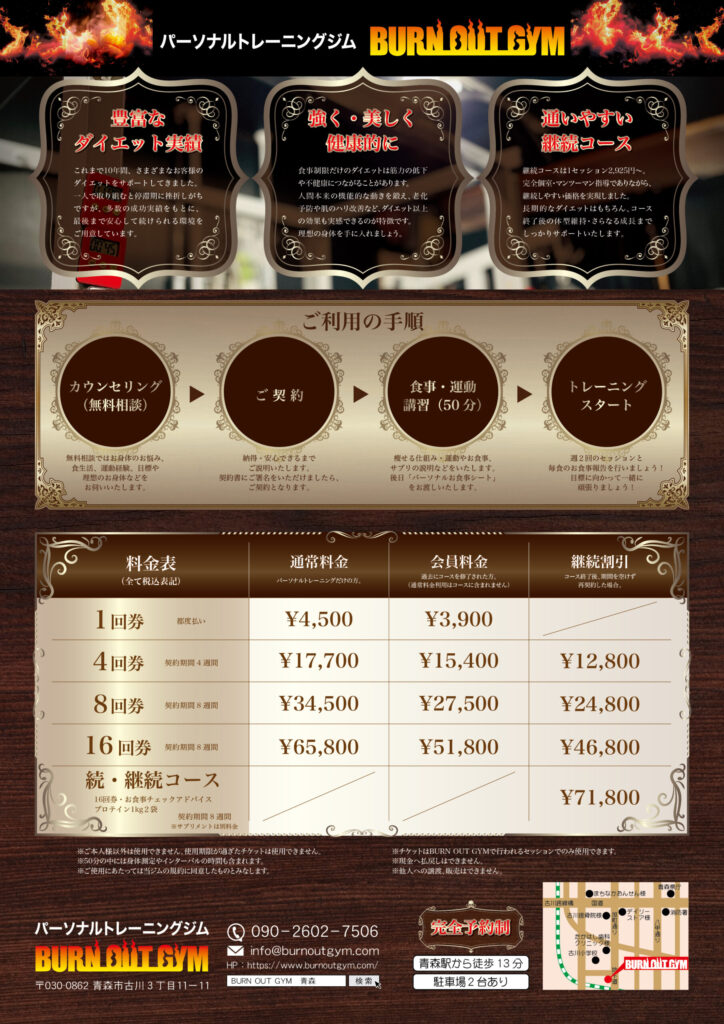 | Cジム | 約6ヶ月(48回+食事指導) | ¥228,000+¥198,000 | ¥426,000 |