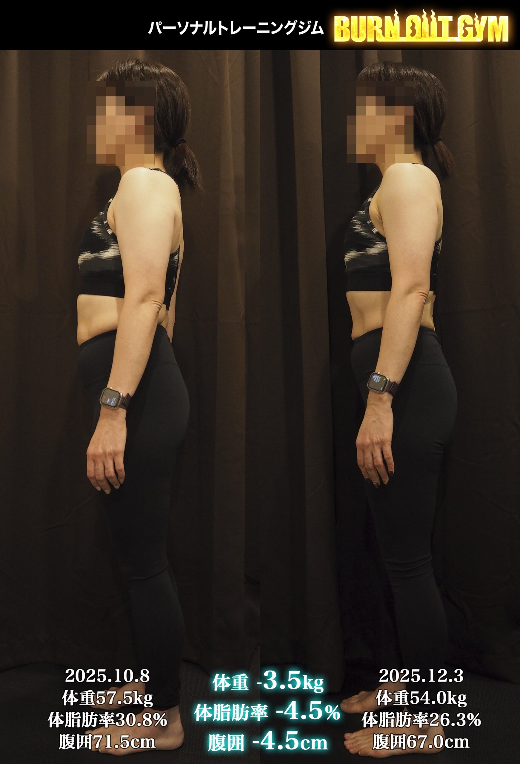 今回コースを受講されたお客様は体重3.5kg・体脂肪4.5%の減量に成功されました。